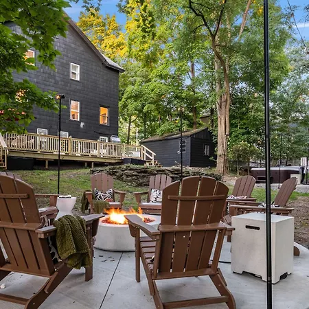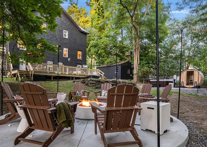 Situada a 3 km del Molino en Green Hole, la villa Hudson Valley Hot Tub Sauna Fire Pit Games invita a los huéspedes a relajarse en un patio.